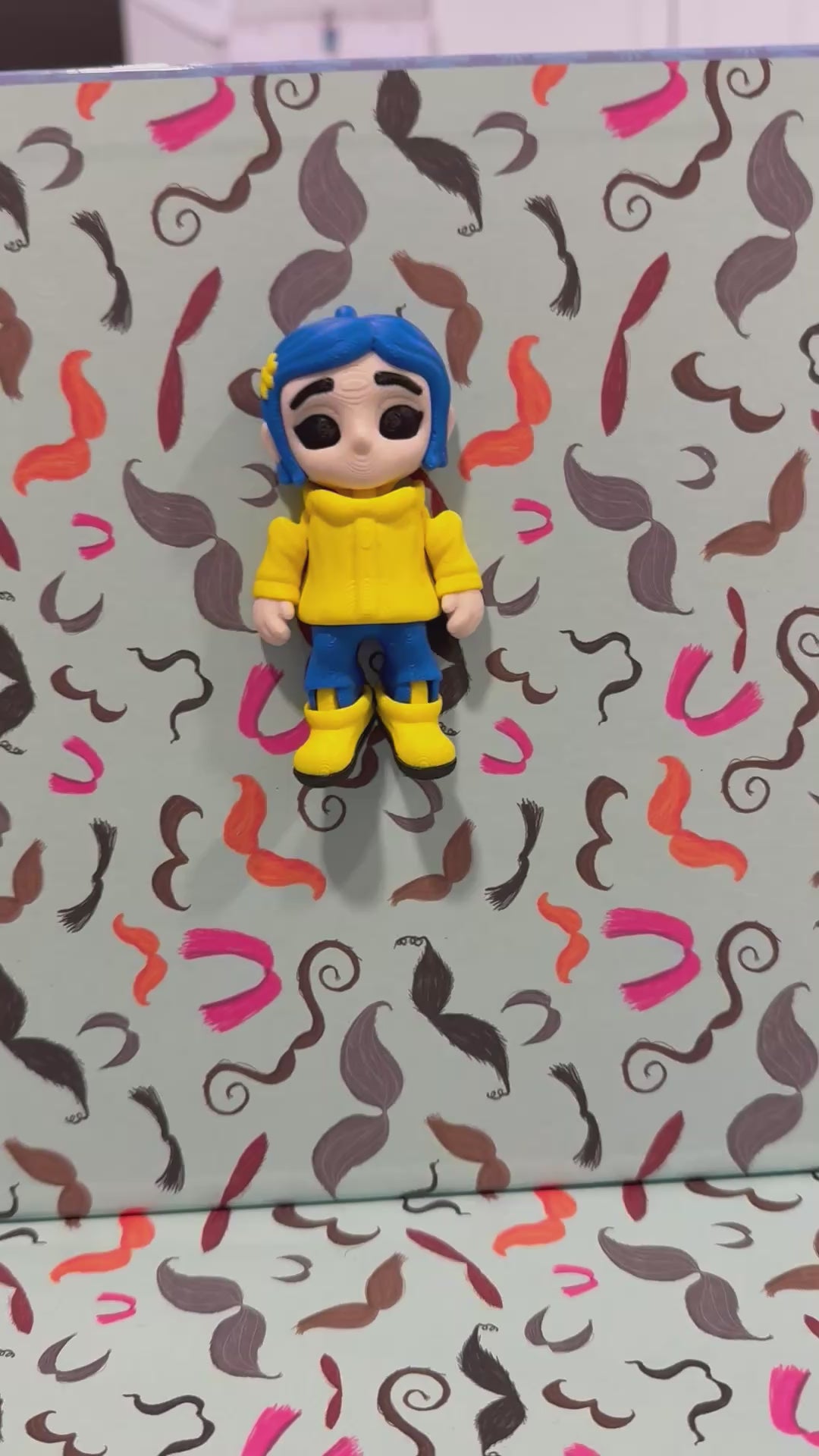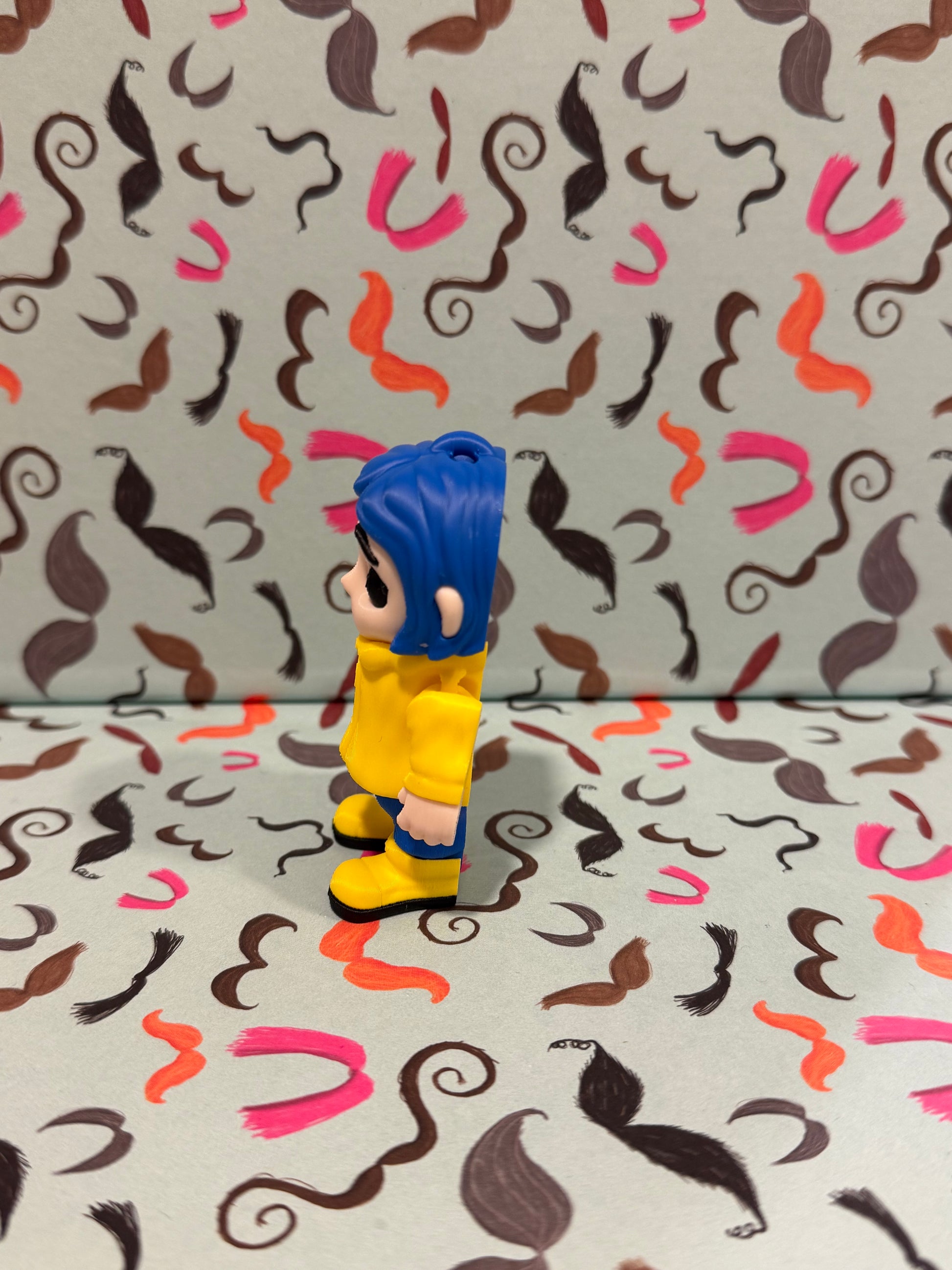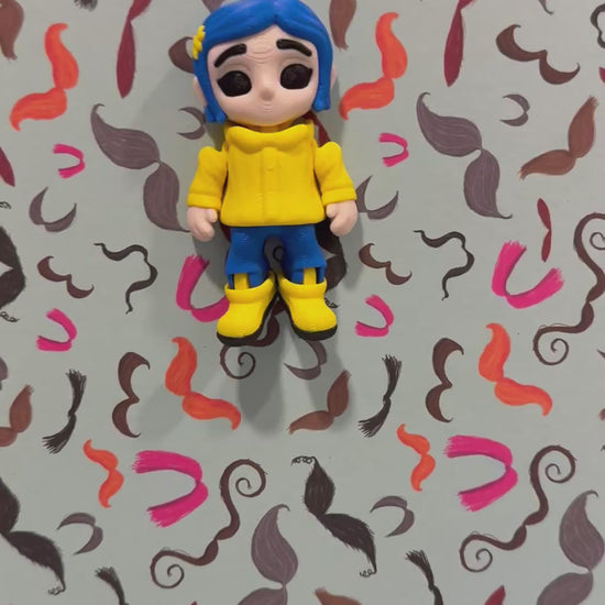 This Coraline is straight out of the movie! She’s only 3 inches tall, she can articulate, and even has a magnet so you can stick her to metal things. Plus, she’s got a little spot on her head where you can add a key ring. How cool is that?