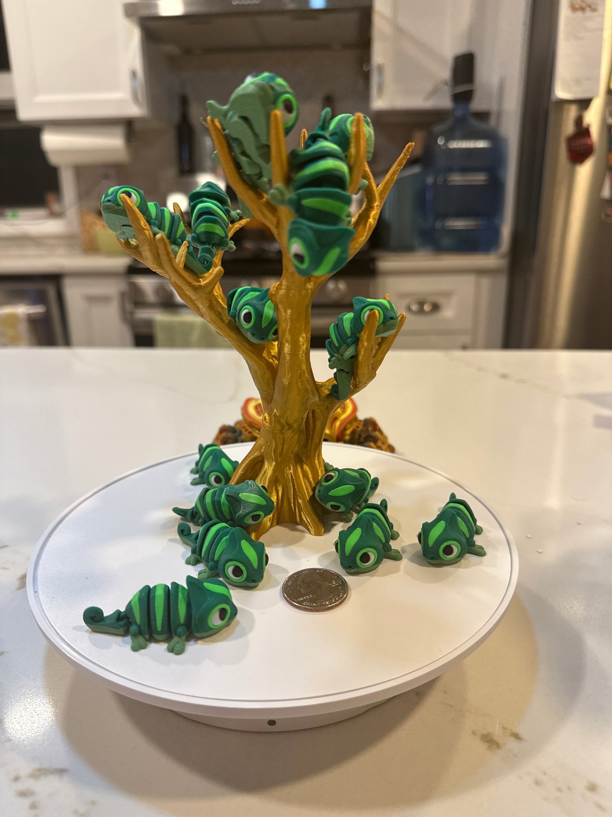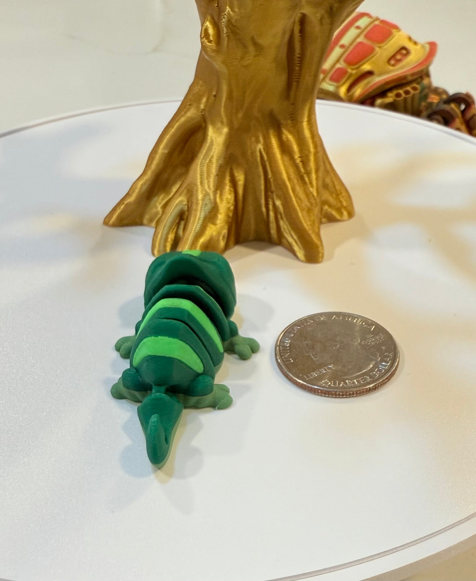 This tiny Flexi chameleon can flex and when hit with a black light the light 💡 green colors glow.