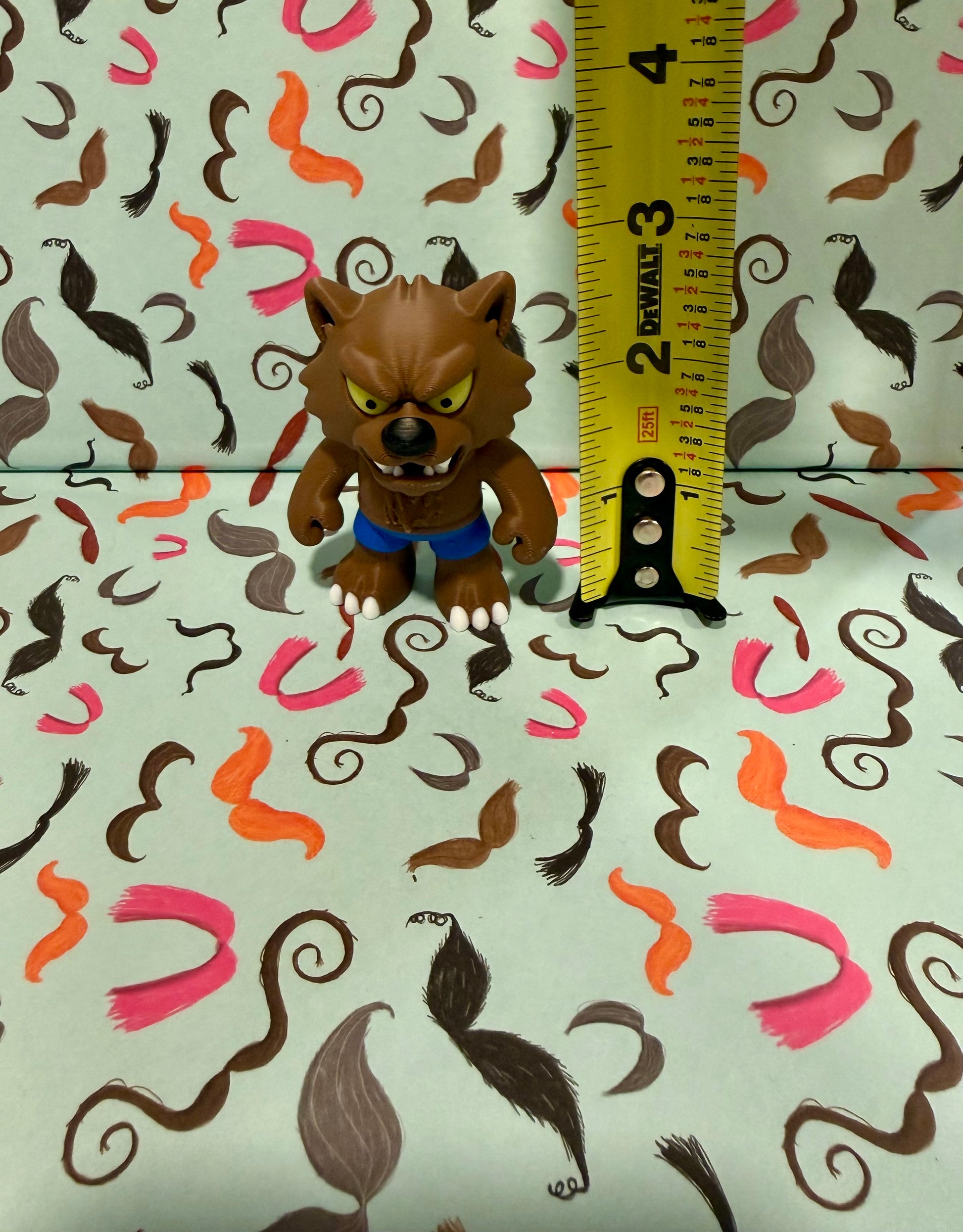 This little werewolf is just shy of 3 inches tall! It has those awesome glow-in-the-dark eyes that give it a strong, stand-out look. Plus, it’s magnetic, so you can easily stick it to metal surfaces.